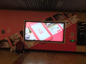 As far as ad formats go, billboards are sparse, but digital and canvas displays are omnipresent. I haven’t watched much television so I can’t speak much on that medium, but Internet advertising is just as common behind the Great Firewall. There are many platform options for advertising here, whether it’s POP displays, pop up events/exhibits in the plethora of malls around Shanghai, promotions through Taobao, Alipay, or other apps, to things as obnoxious and in your face as people handing out flyers to trapped metro riders.